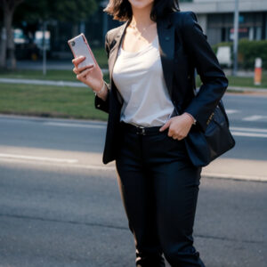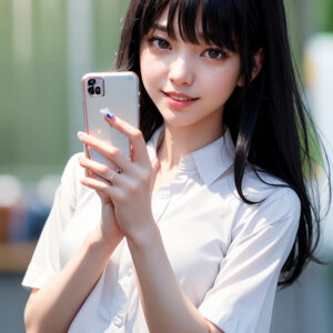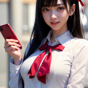 スマホを操作しながらこちらを見る女子高生[2834110378]