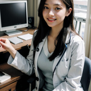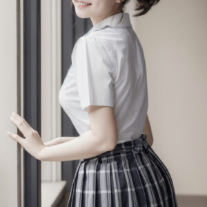 学校の階段でおしゃべりする笑顔の女子高生[3074342768]